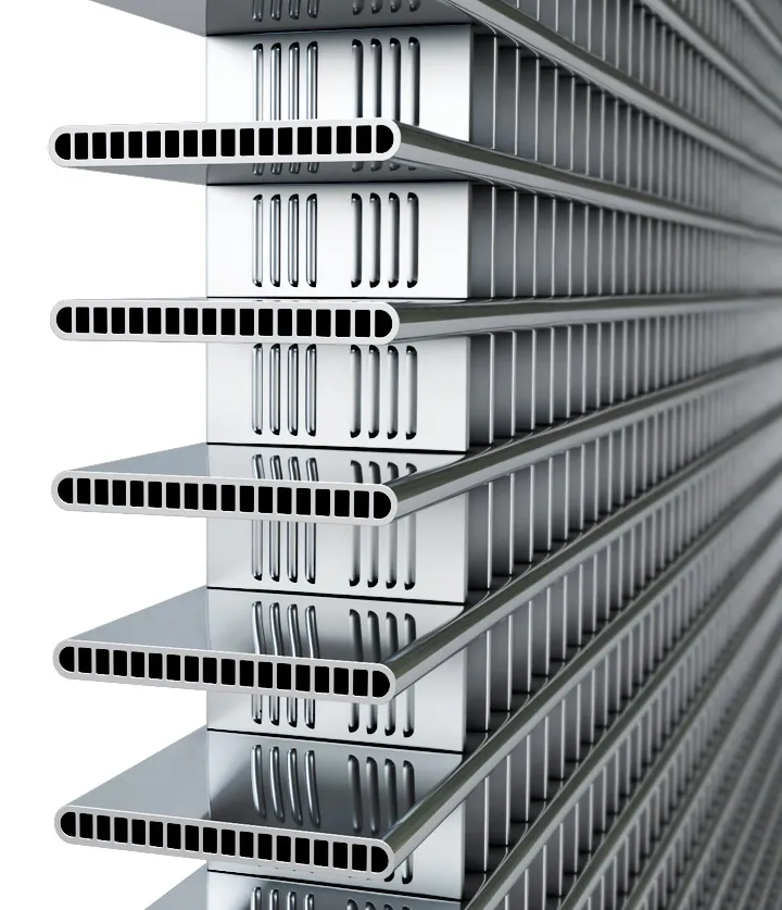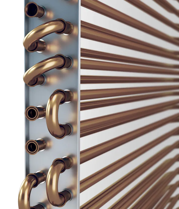 Использование материала DuraFin позволили улучшить рабочие характеристики теплообменника. Лопасти вентиялтора отличаются большей толщиной и изготовлены из более плотного материала. Его улучшенное покрытие обладает более высокими антикоррозионными свойствами Этот материал в течение 100 дней был подвергнут антикоррозионному тесту с использованием морской воды (Sea Water Acetic Acid Test (SWAAT)*.