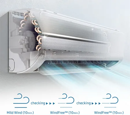 Режим Комфортный сон с технологией Wind-Free* обеспечивает оптимальные условия для комфортного сна. Усовершенствованная конструкция воздушных заслонок создает равномерный воздушный поток, а контроль температуры в режиме Wind-Free* помогает быстрее уснуть и проснуться свежим и отдохнувшим.