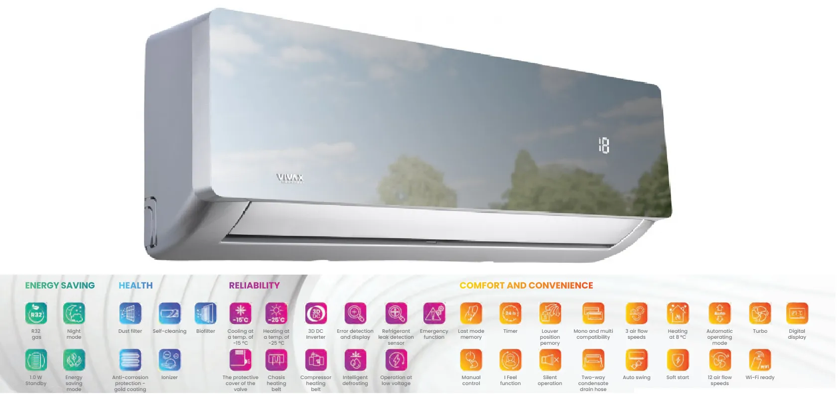 Основные характеристики кондиционер Vivax R+ Design::