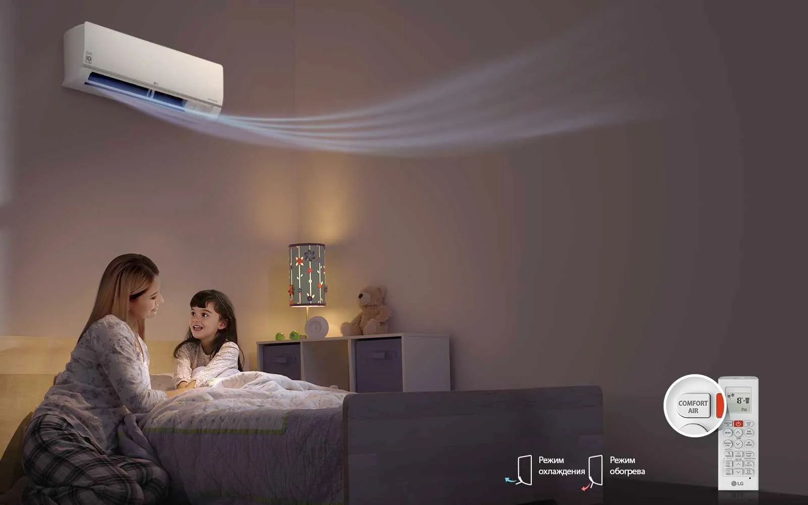 Работа LG Inverter Eco Smart в режиме интенсивного нагрева позволяет эффективно нагревать помещение в переходный отопительный период — время года, когда система центрального отопления не работает, т. к. температура наружного воздуха уже достаточно высокая или недостаточно низкая. В большинстве регионов Беларуси — это октябрь и апрель.