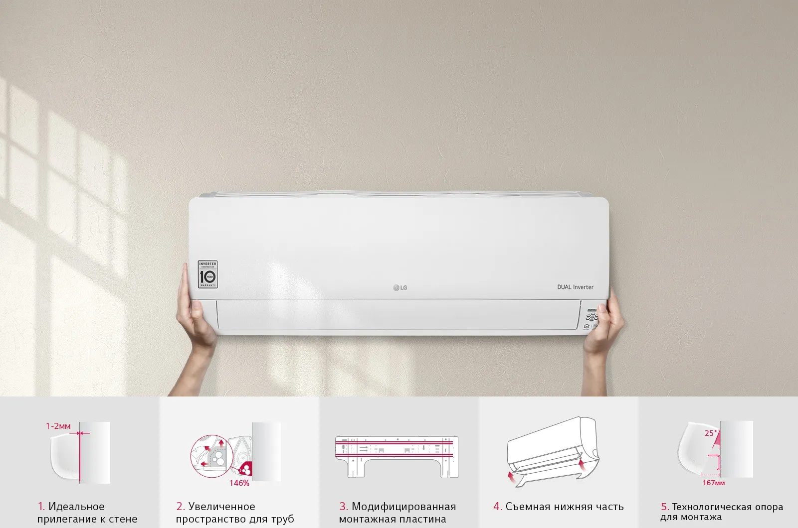 Инверторный компрессор LG решает проблемы, связанные с недостаточной производительностью и шумом, в результате чего кондиционер охлаждает помещение быстрее, работает тише и служит дольше.Благодаря десятилетней гарантии на компрессор преимуществами кондиционера LG можно пользоваться дольше.