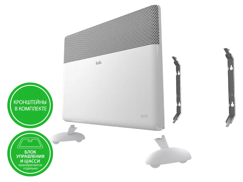 Для работы конвектора Apollo необходимо обязательно выбрать один из трех блоков управления и при необходимости напольной установки – шасси.