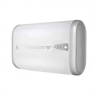 На корпусе электрического накопительного водонагревателя Electrolux EWH 100 Centurio Digital H расположен LED-дисплей, кнопка включения частичной и полной мощности нагрева, ручка регулировки температуры и указатель настройки экономичного режима.