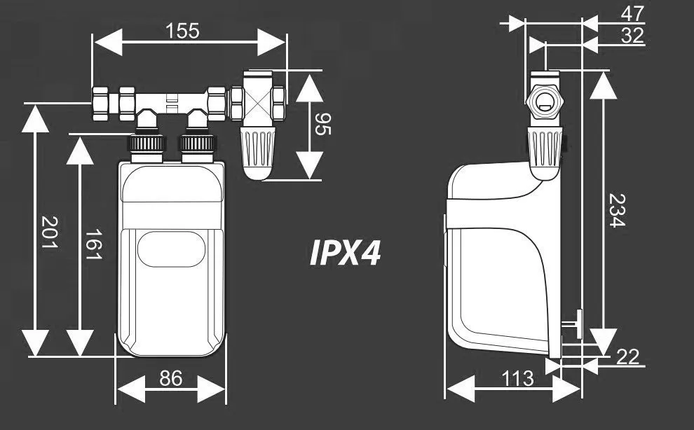 Электрический проточный водонагреватель с линейным присоединителем для нескольких или одной точки разбора воды.